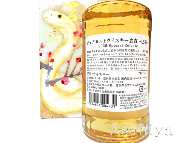 豊穣と再生を司る生命力あふれる蛇を帯で表現した巳年を祝福するピュアモルトウイスキー。